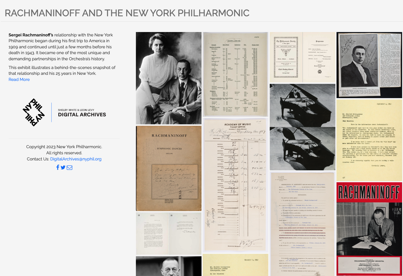 I would say that more recently there have been more similarities in my day to day. Before that, it was often very project based, focusing on things like digitization projects, which would finish, and then we'd move on to something else. And then, of course, there are background tasks that you are always working on. For me, that has always been maintaining the public-facing Digital Archives at archives.nyphil.org. This was long running and well established before I started working at the NY Phil, thanks to the work by my predecessors who digitized a huge bulk of our physical collection and then also created an online portal where the public can access it. Being the custodian of that platform is one of my primary responsibilities.